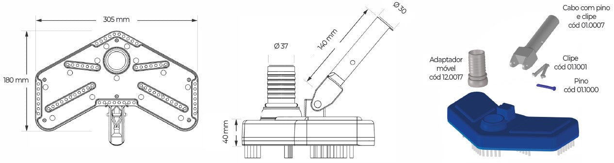 It brushes the bottom of the pool, helping to eliminate microorganisms and thicker debris. It has an articulated suction nozzle, which makes it easier to handle the hose and has a practical attachment for the aluminum handle (not included).