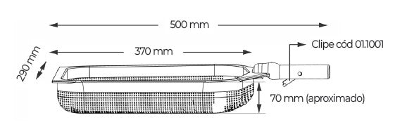 Metal frame, providing greater resistance and durability, with a nylon net. Handle with quick-release clip, to facilitate placement and removal (handle not included).